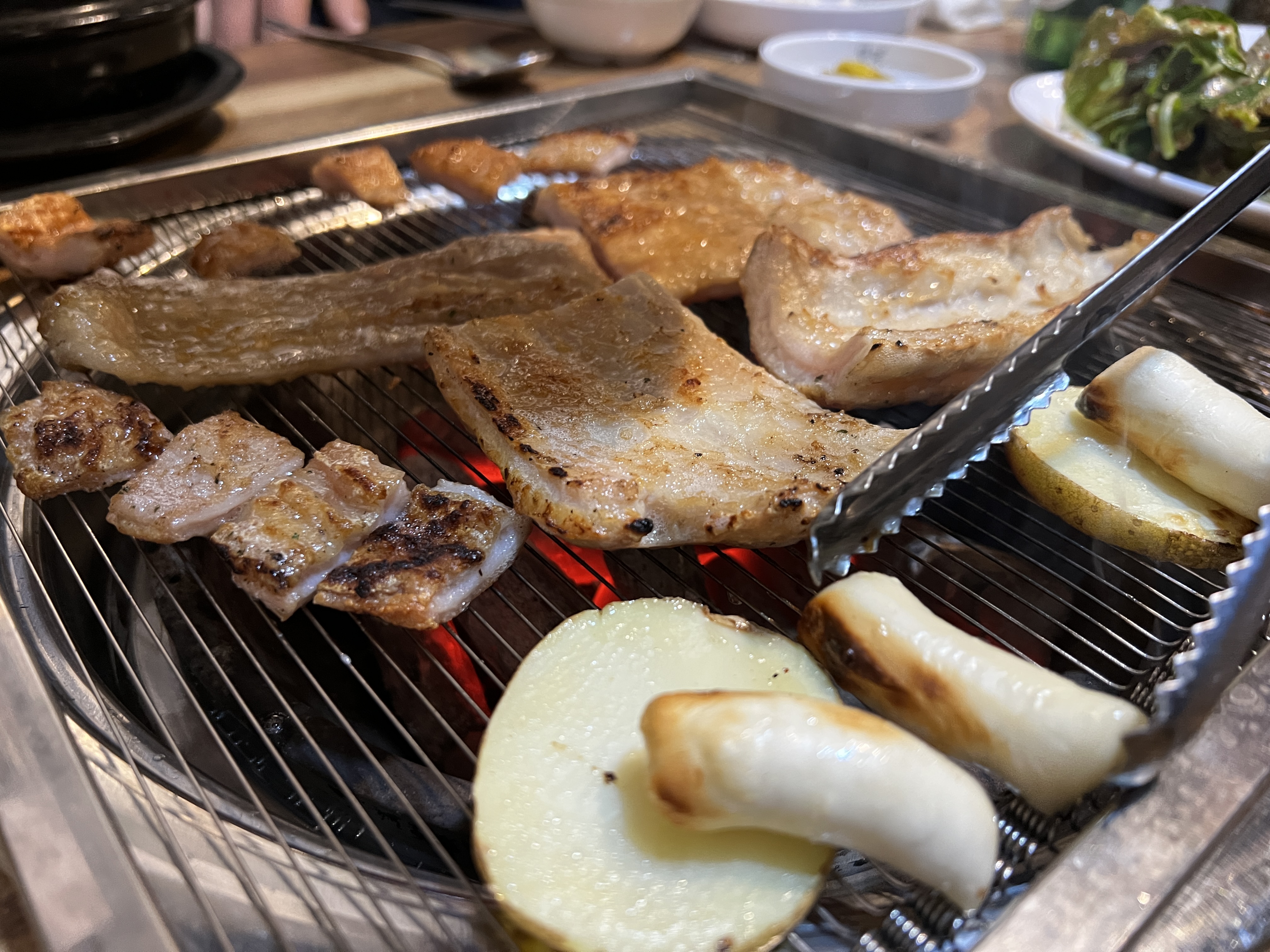 상추와 깻잎이 준비되었어요. 요즘 채소값이 금값이라 많이 나오지는 않았지만 그래도 남기는 것보다는 먹고 필요한 정도만 리필해서 먹는 것이 좋죠.