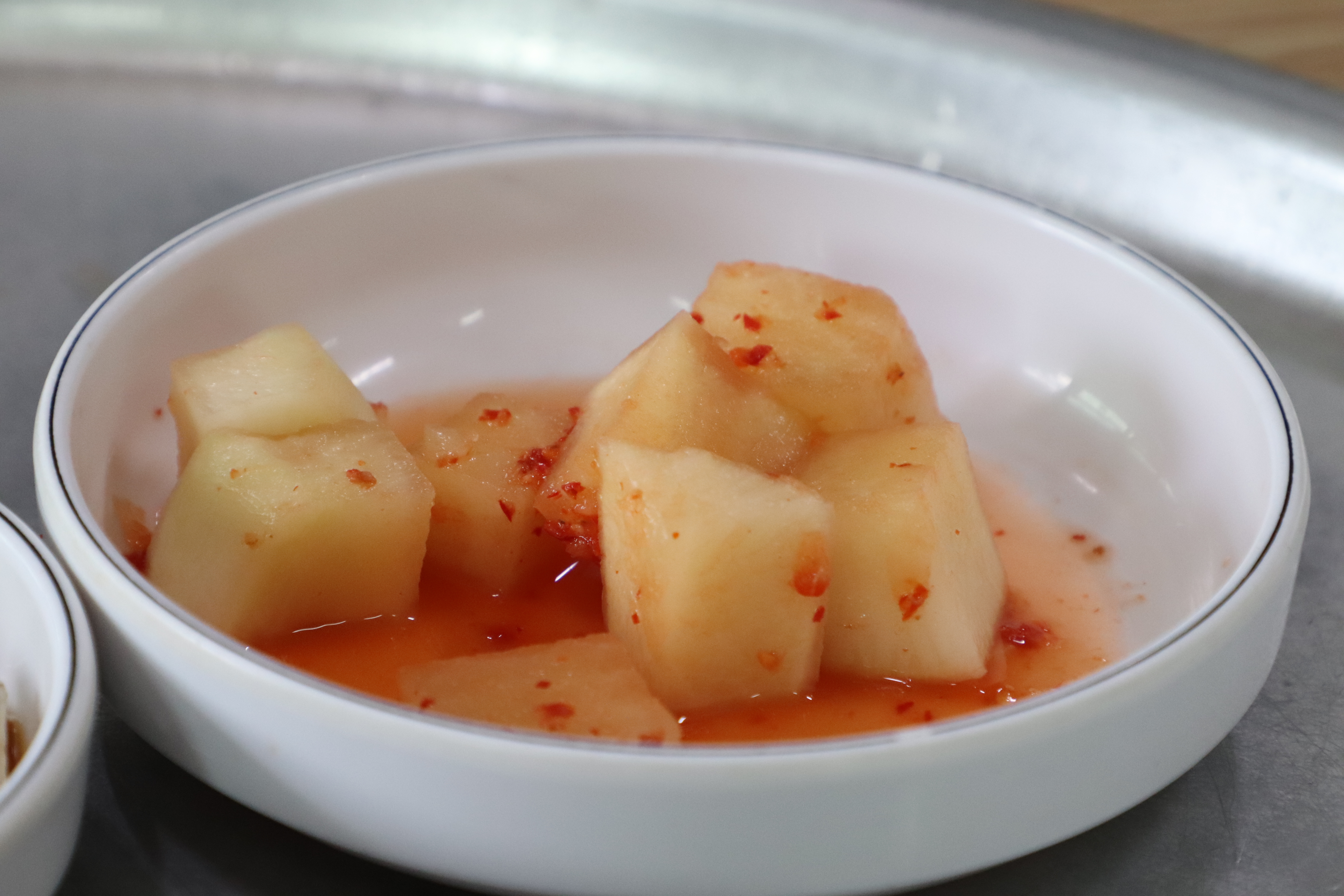 국수를 주문하니 기본 차림으로 김치와 깍두기를 내어주시네요. 적당한 양으로 김치가 참 먹음직스럽더라고요.